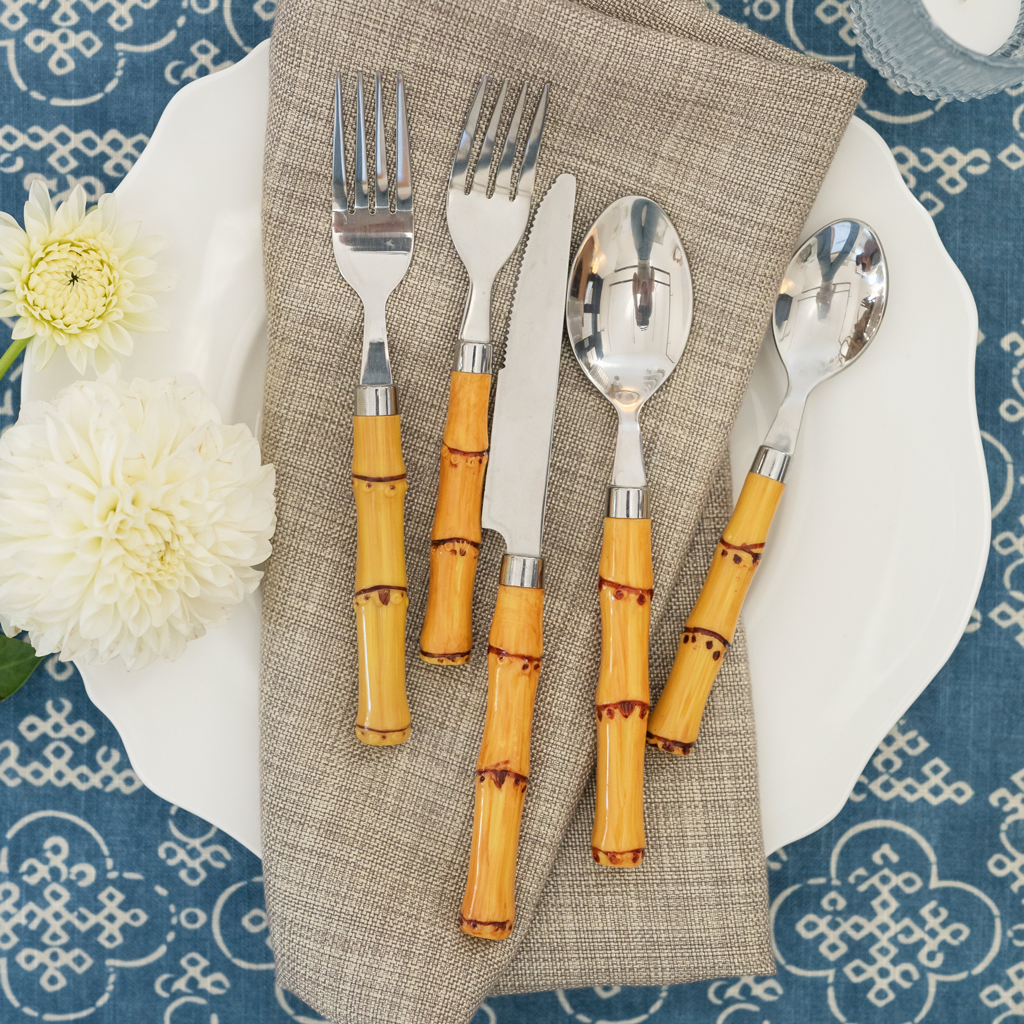 No oasis is complete without this imaginative flatware set. The Flint Bamboo Collection will transport you to the tropics!