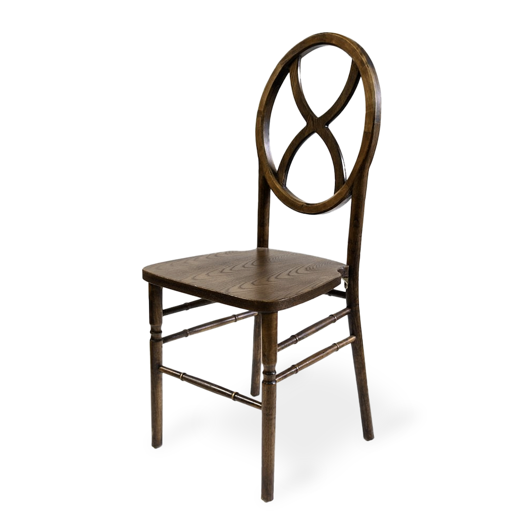 Our Mahogany Sandglass Chair has a rich mahogany finish and sculptural hourglass back make this chair a standout choice for events needing a darker, refined touch. Sophisticated, versatile, and timeless — it pairs beautifully with both moody and neutral palettes.